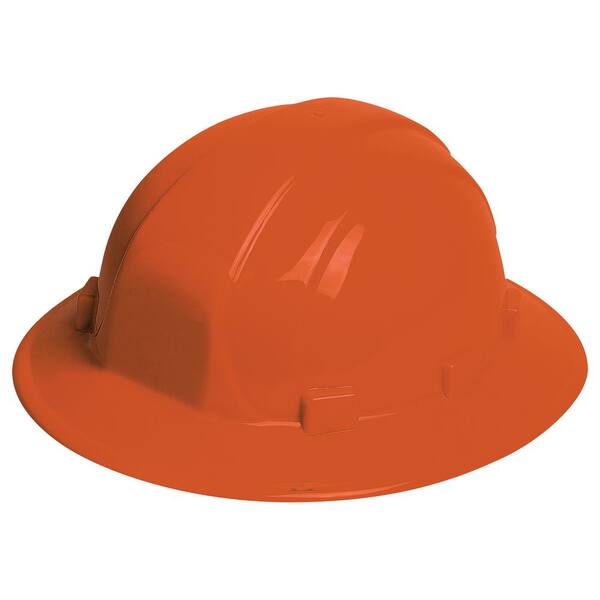 Erb Omega Ii 6 Point Nylon Suspension Mega Ratchet Full Brim Hard Hat In Orange 19913 The Home Depot
